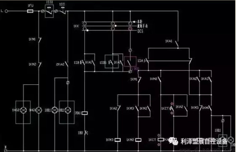 為便于大家理解,下圖是某電氣柜、現(xiàn)場操作箱和DCS系統(tǒng)三地控制的降壓啟動二次回路控制原理圖